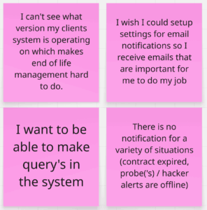 - Not being able to help clients due to a lack of tools (to help solve the problems I encounter) or info on the tools I’m using (lack of documentation/support from the tool company)