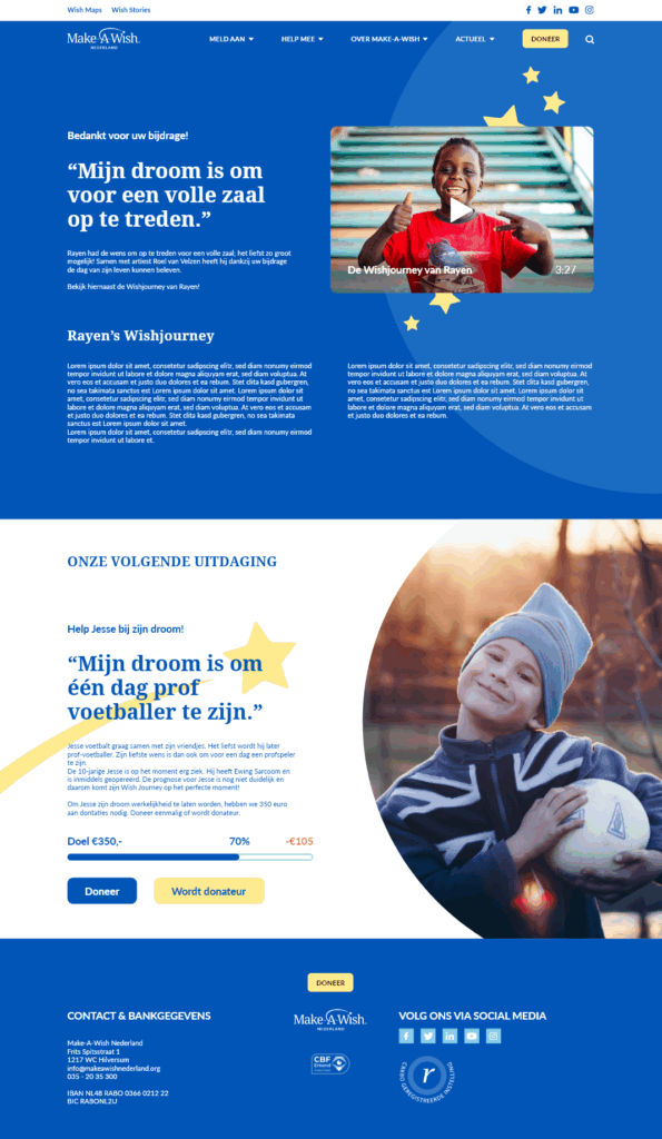 Our plan to do this was to set up a page where people could read short stories about the various children’s hopes, dreams and history. Now that people can put a name to a face, they feel more directly involved and invested to help contribute to a child in need through the wish journey. It was around this time when I came up with the idea to show a “Thank You” message to donors who contributed to a specific wish journey, where we could thank them and directly show the impact their donation had on the child(ren).